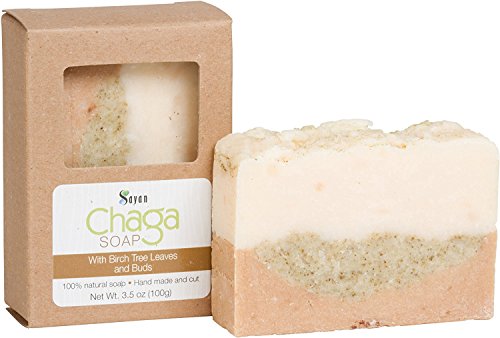 Pamper your body with ancient tradition. We are introducing Sayan Chaga Mushroom Soap with Birch Tree Leaves and Buds. Get most notice healthier and more even-toned skin that's moist, firm, and soft. From ancient times women have taken advantage of the useful properties of birch buds in cosmetic medicine. For example, birch buds can be used for regreasing, for acne treatment and blemish control, for the inhibition of skin aging processes, for excessively greasy hair care, and can be also applied in cases of excessive hair loss. Why Choose SayanChagaMushroom Soap with Birch Tree Leaves and Buds? Best exfoliating product and this pure Chaga soap promotes more even toned skin and a fresh, healthier appearance. We have been the leading provider of pure Chaga product since 2007. Sayan use only the highest quality, sustainably harvested Chaga and birch tree leaves and buds. Features of Sayan Chaga Mushroom Soap with Birch Tree Leaves and Buds Excellent cleansing, handmade only from all natural ingredients Natural stimulants that enhances skin immunity and its protective functions Strengthen capillaries and reduces skin redness Systematic use of this natural soap improves metabolism and stimulates regeneration of skin cells Pure soap won't cause irritation while it provides antiseptic benefits Present your body with ultimate health regimen - Pure ChagaMushroom Soap Chaga soap is gentle enough for all skin types, helps tighten the look and feel of skin. Chaga soap works well for cleansing away daily impurities much better than many other exfoliating products. Birch buds are a source of tannins, resins, flavonoids, essential oils, acids (such as ascorbic acid, betulinic acid and others). Birch Buds and Leaves are perfect antiseptics, as well as excellent cicatrizing cosmetic product. Chaga Soap is it great for your skin from a beauty perspective and can help you target some problem areas for youthful and healthier-looking skin.Feature