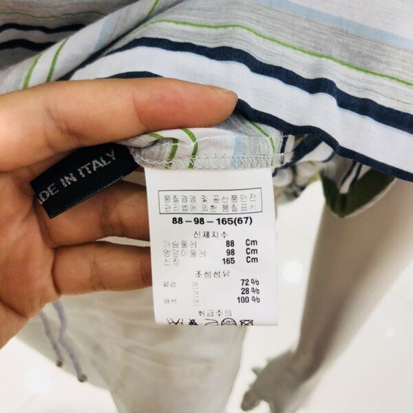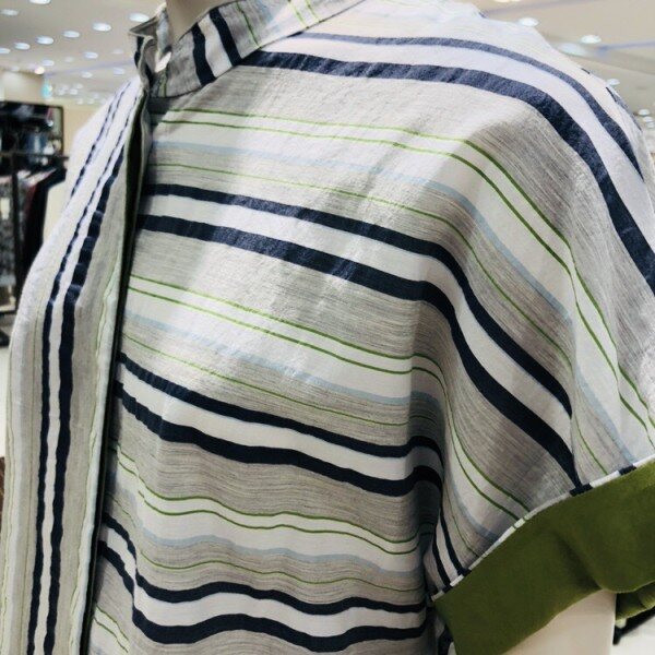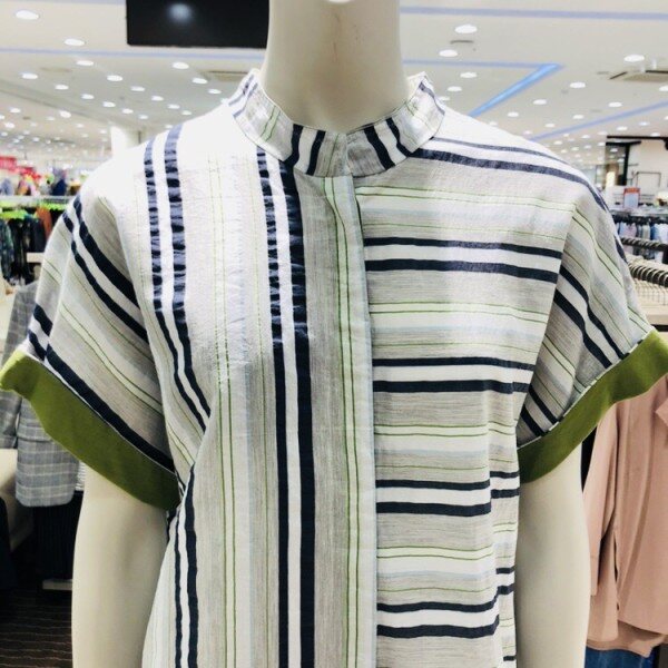 수입원단의 면실크소재의 블라우스 입니다 스트라이프와 배색감이 포인트로 부드러우면서 캐주얼한 스타일을 연출하실수 있습니다