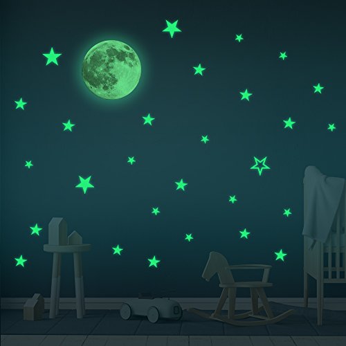 - ✅ YOUR CHILD'S SWEET DREAMS WITH %100 SAFETY MATERIAL : Like in their dreams and talents glow in the dark moon and stars in your child's room. They will provide a bright room when they wake up at night because all children have fear of the dark. Also we are using for all products waterproof, good quality, Non-toxic, reusable, eco-friendly material. For you and your child health.