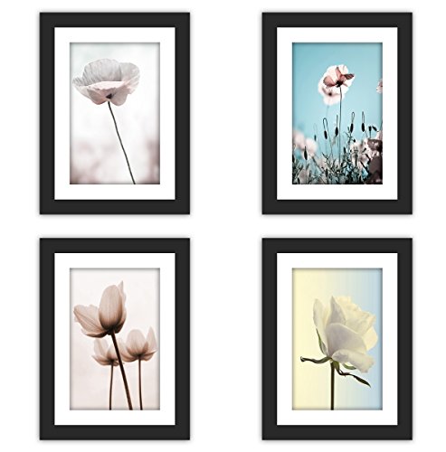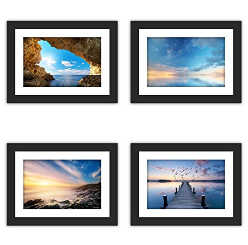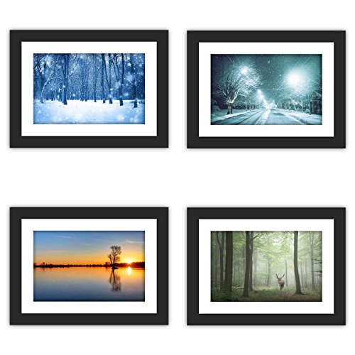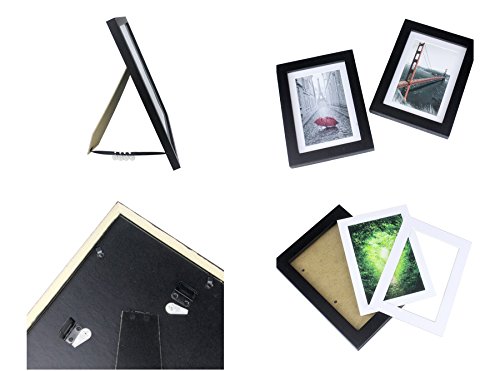 4x Real Glass Wood Frame Black Fit 5x7" ,1 Mat Matted Fit Image Pictures Photo 4x6" Desktop Stand or Wall Hang Vertical Horizontal Family Decoration (1-4)