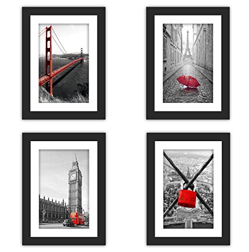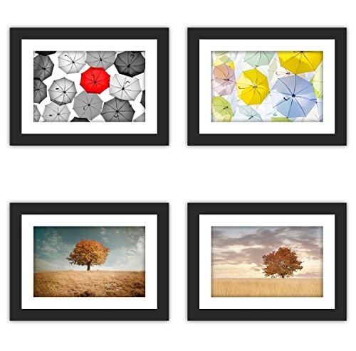 Package include 4Pcs x black wood frame, 4x mats,4x double side photo, choice using my photo or frame your own photo