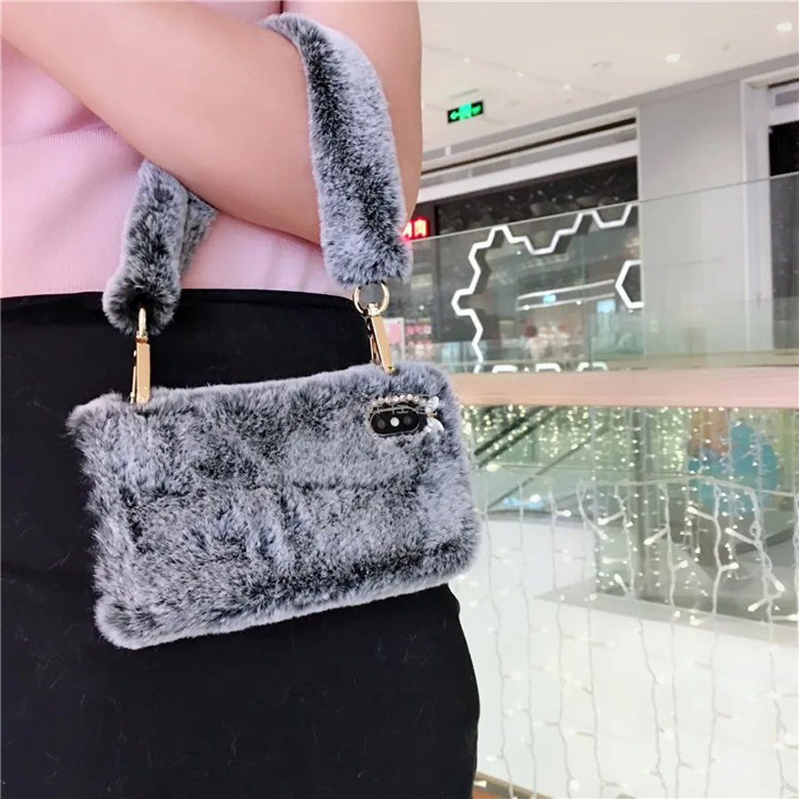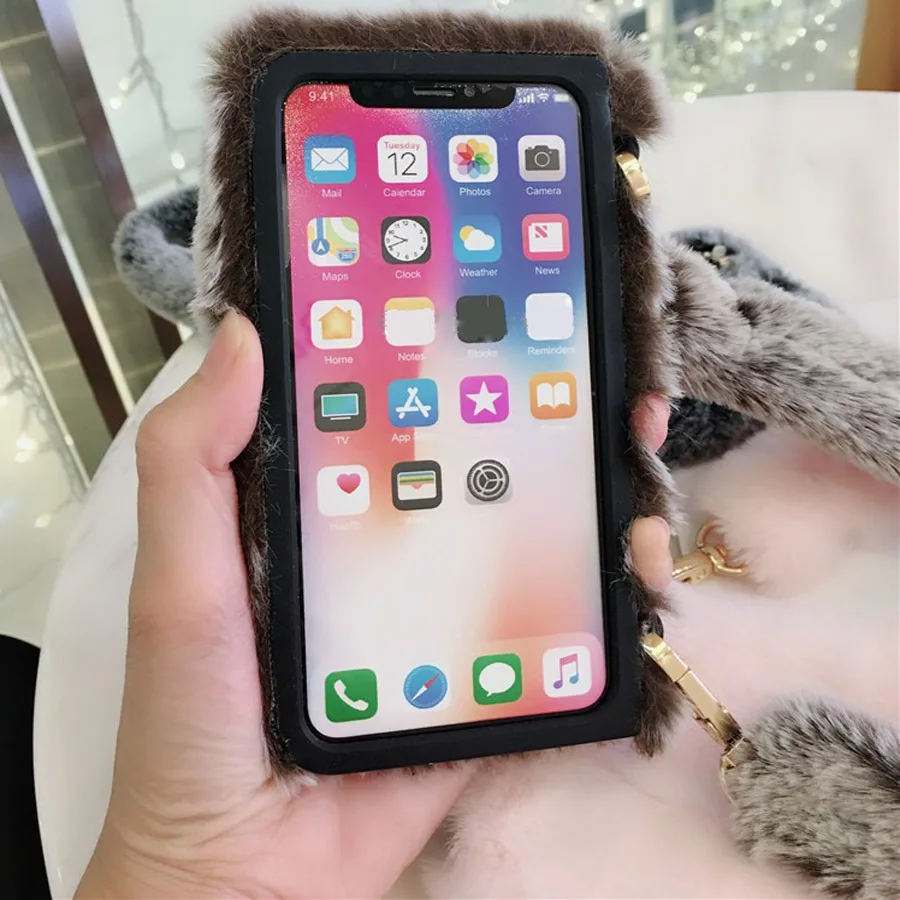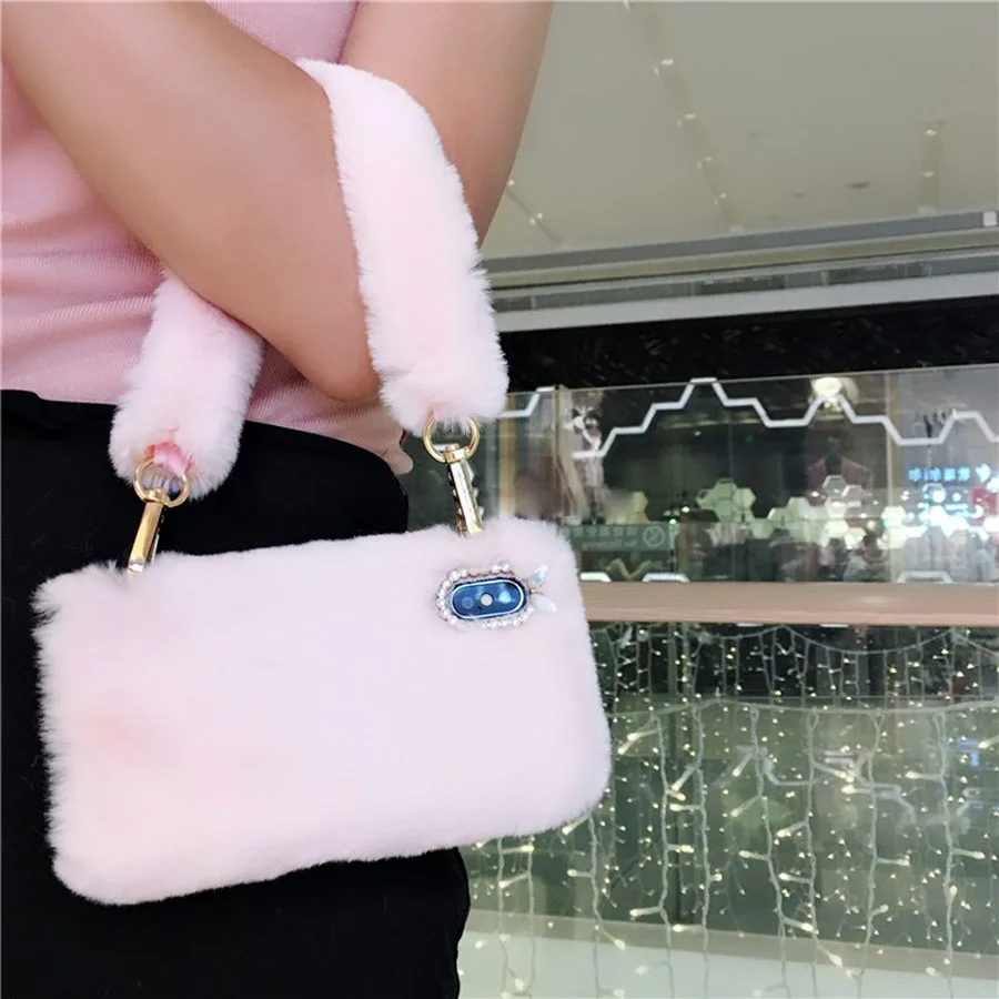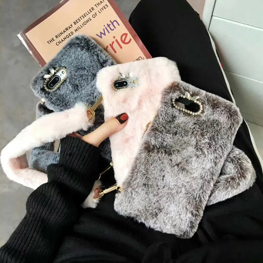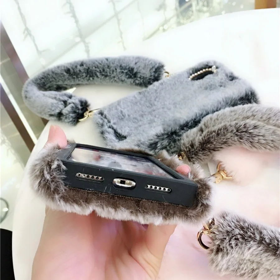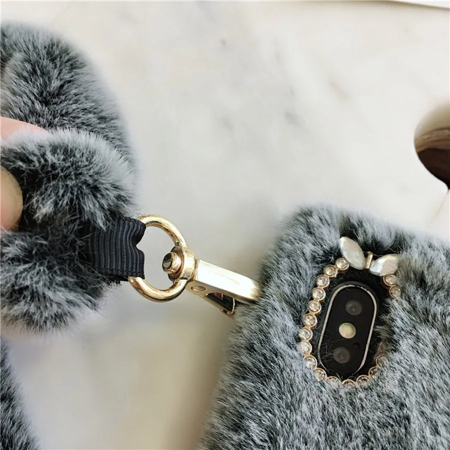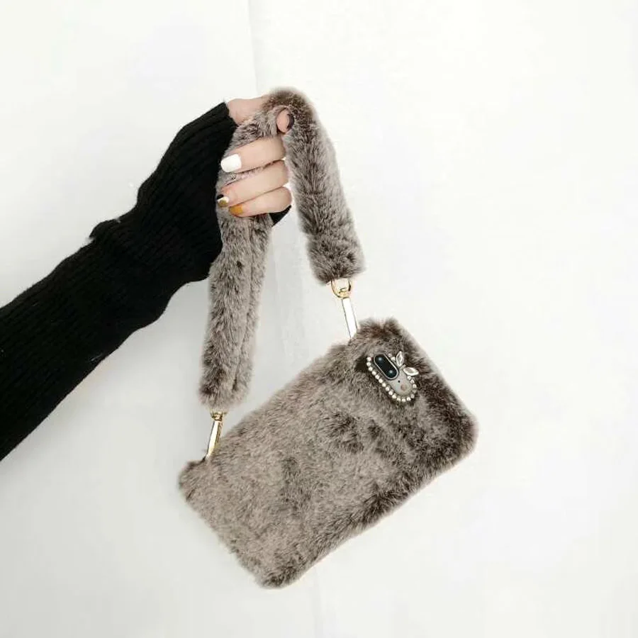 Features:fashion retro 3d rabbit plush phone bag case