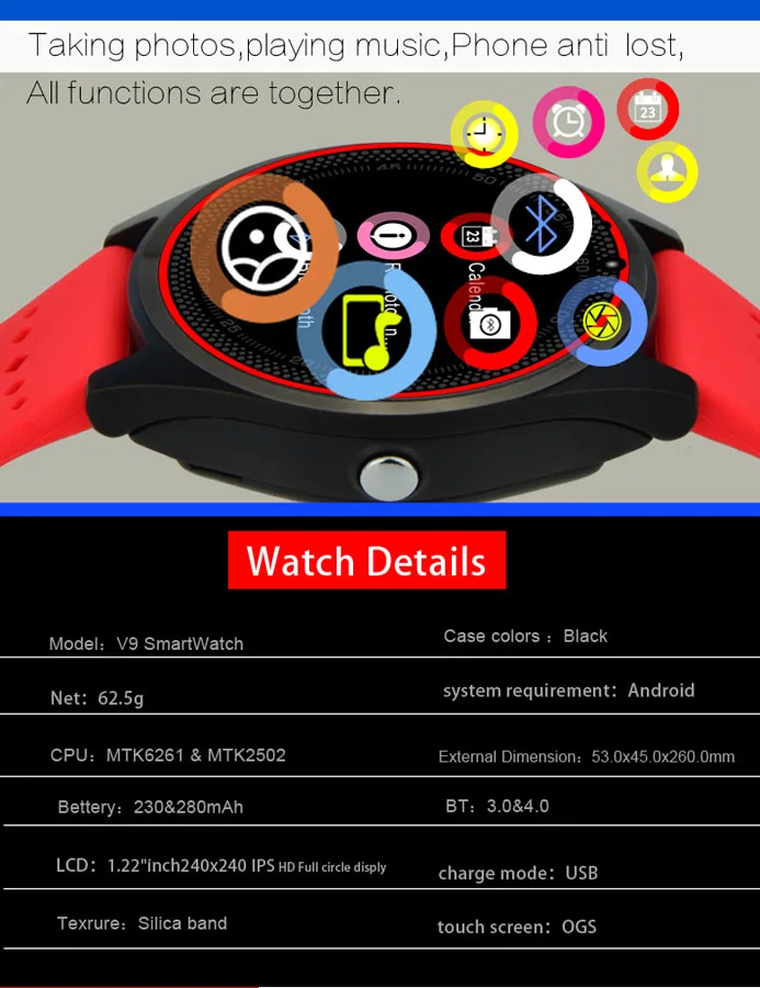 Function:Dial Call,Answer Call,Passometer,Alarm Clock,Call Reminder,Calendar,Remote Control,Sleep Tracker