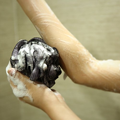 JCMASTER Luxury black bath and shower sponge mesh puff with gentle body exfoliating and scrubbing power remove dead skin cells, for both men and women