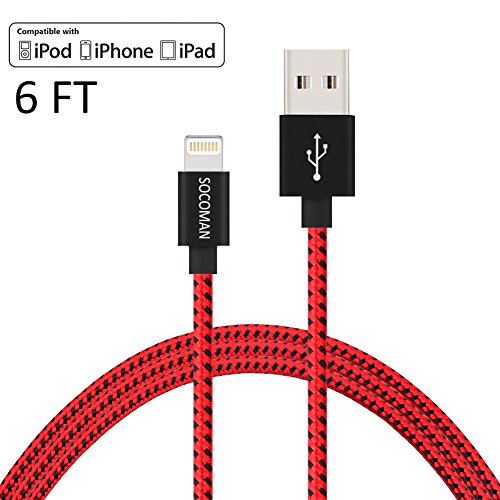 -. Title : Socoman Charger Cable, 6FT Nylon Braided iPhone Cord Lightning Cable to USB Charging Cable for iPhone X/8/8 Plus/7/7 Plus/6S/6S Plus,SE/5S/5,iPad,iPod Nano 7