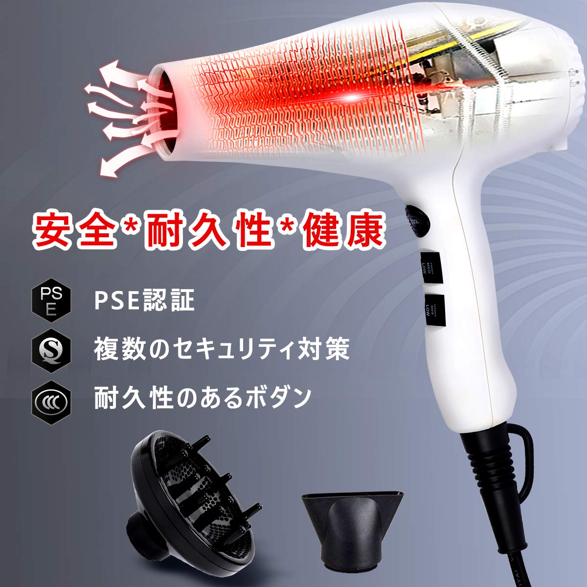 【1200W大風量・スマートな恒温システム】最大限にパワー1200Wと温度85℃が実現し、乾きが速くので夜や朝っぱらの時間を節約する!内蔵の恒温システムは、熱と冷風の循環を効果的にコントロールができます、熱の集中を防ぎ、髪を保護します。