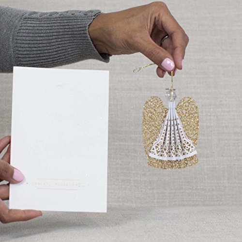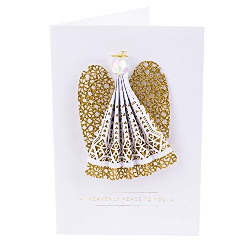 Ideal for family, friends, coworkers, and anyone on your list, this holiday card features a removable angel ornament with intricate gold wings, gemstone head, and golden wire halo. The message on the front of the card reads, "heavenly peace to you" Open the card to reveal the inside message, "Merry Christmas" The card measures 5 inches by 7.2 inches made with high quality cardstock paper; an envelope is included. All Hallmark cards are made with paper from well-managed forests. Signature offers stylish shoppers a curated and considered line of upscale and unique cards and gifts that reflect their personal style and make an immediate and lasting impression. Hallmark was founded in 1910 when 18-year-old J.C. Hall arrived in Kansas City, Missouri, with a couple of shoeboxes of postcards under his arm and the American dream in his heart. Hallmark greeting cards are sold online and in nearly 40,000 retail stores across the globe and people continue to recognize the iconic Hallmark brand as "the very best."Feature