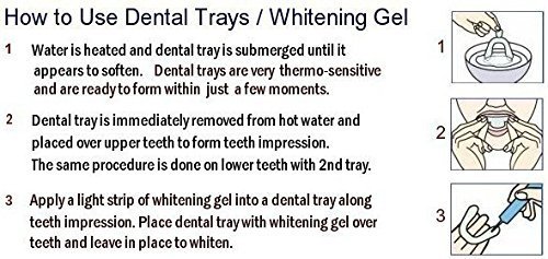 Pearl Whitening uses the same professional grade whitening gel that dentists use, for a fraction of the cost. Simply load the gel in the included mouth trays and insert snuggly against your teeth. Wait for 5-15 minutes for best results. Rinse gel off teeth after use and do not ingest gel. Results can be seen after 1-2 uses.