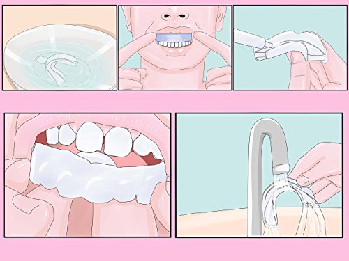 Bring 1 cup of water to a temperature of 158-176°F (70-80°C). Do not put trays in boiling water because the super hot temperature will deform the trays! At the desired temperature (158-176°F (70-80°C), submerge trays individually in the water for 10-15 seconds, or until trays become malleable. You can hold the tray in the water using the circular tab. Once the tray is at the desired flexibility level, remove the trays from the water and insert them into your mouth around your teeth, forming the trays by sucking out excess air and water. You can try this a few times until you get the perfect fit.