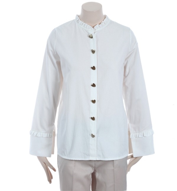 넥라인과 소매 부분에 프릴 장식으로 포인트를준 디자인입니다