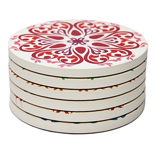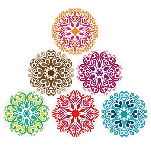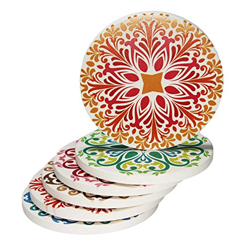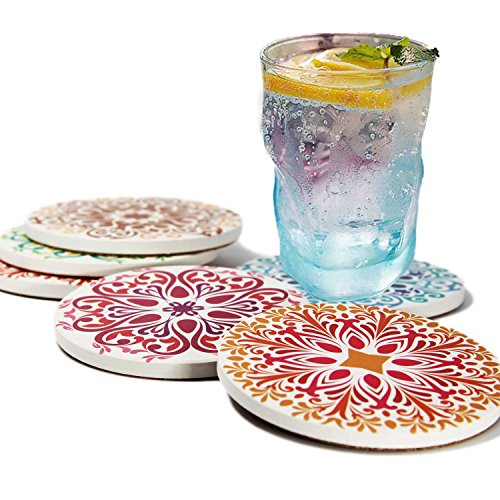 AMAZING VALUE -- Set of 6 Coasters with different color and patterns in mandala style, meet most of family needs, great price and amazing great product. Made of strong and durable water-absorbing ceramic stone, finished with a unique color printing technology, the pattern will never fade.