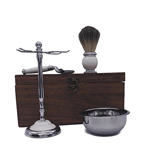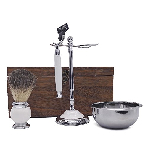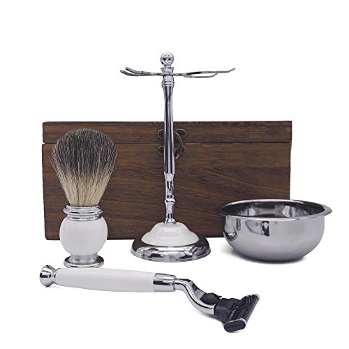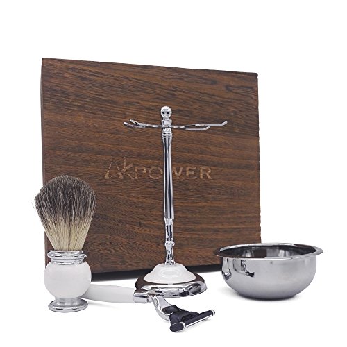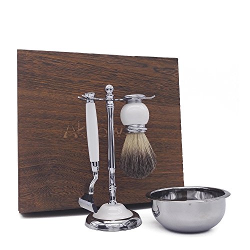 AKPOWER Shaving Gift Set for Men, Badger Brush, Bowl, Stand and Cartridge Razor White