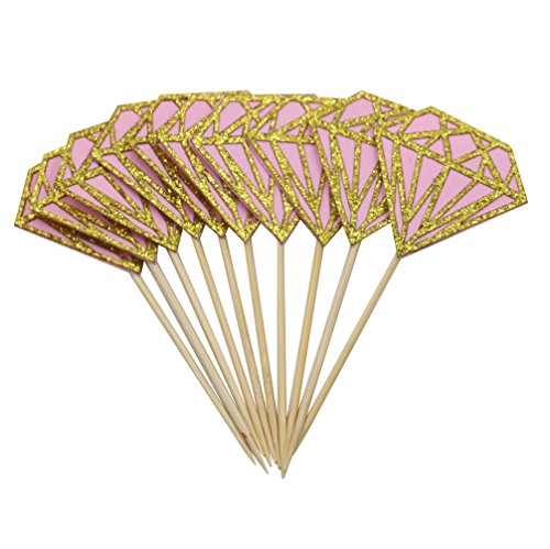 Mybbshower "Pink and Gold Diamond Cupcake Topper for Bachelorette Party Pack of 20