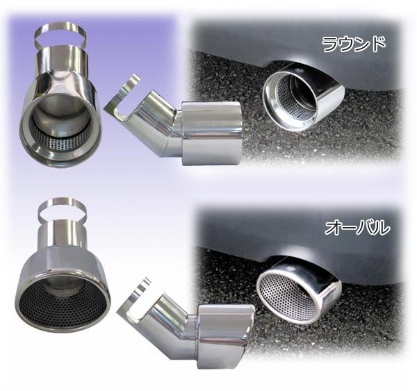 ハイエース200系用の♯304ステンレス製です。下向きに出ているマフラー出口をほぼ水平の状態にします。インナーにパンチングメッシュを採用。取り付けは付属のバンドで固定します。 |