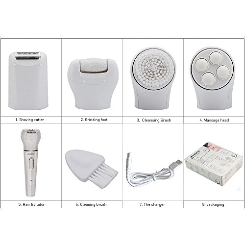 - BEST GIFT BOX SET contain 5 different beauty tool, 1 x Facial Epilator head, 1 x Hair Shaver Head, 1 x Facial Brush, 1 x Callus Removal, 1 x Facial Massager Head. This set will bring you deep pore cleansing experience at home, it is 4-8 times better than the manual method.