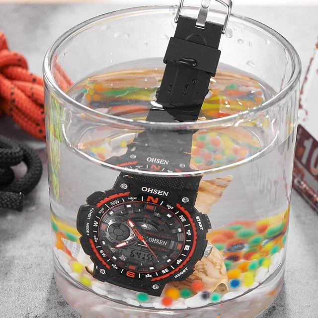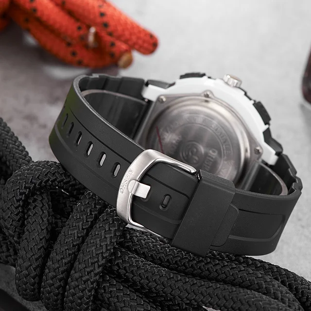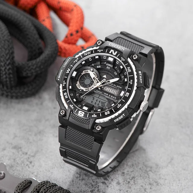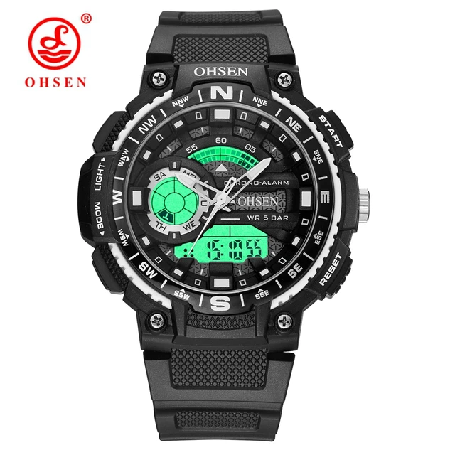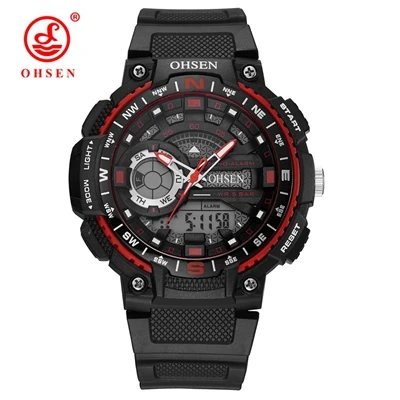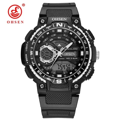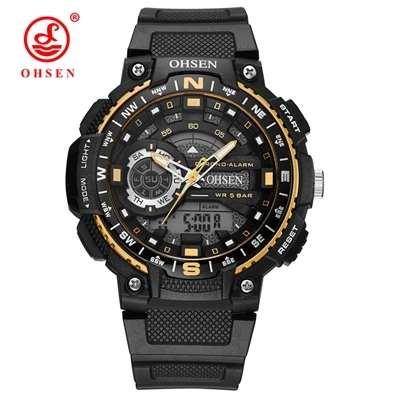 | [해외] 새로운 도착 패션 캐주얼 OHSEN 스포츠 시계 남성 석영 디지털 시계 아저씨 Relogio 시계 방수 고무 밴드 손목 시계 |