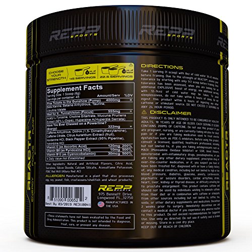 ReleaseDate : 2017-05-18 Studio : Repp Sports Publisher : Repp Sports Binding : Health and Beauty Product Description After we split the atom nothing was the same. You're holding the key to a new age of energy. REACTR is a Rapidly Enhancing Performance Product (REPP) that's unlike anything you've experienced.?Fueled with 2017's Stimulants of the year!?Our 3-stage pre-workout formula delivers radiant energy and explosive pumps through a precision engineered time release system. Enrich performance with just 1 scoop that lasts all workout. 0