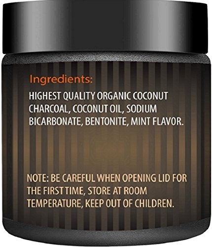 Ingredients: Highest quality organic coconut charcoal, coconut oil, sodium bicarbonate, bentonite, mint flavor
