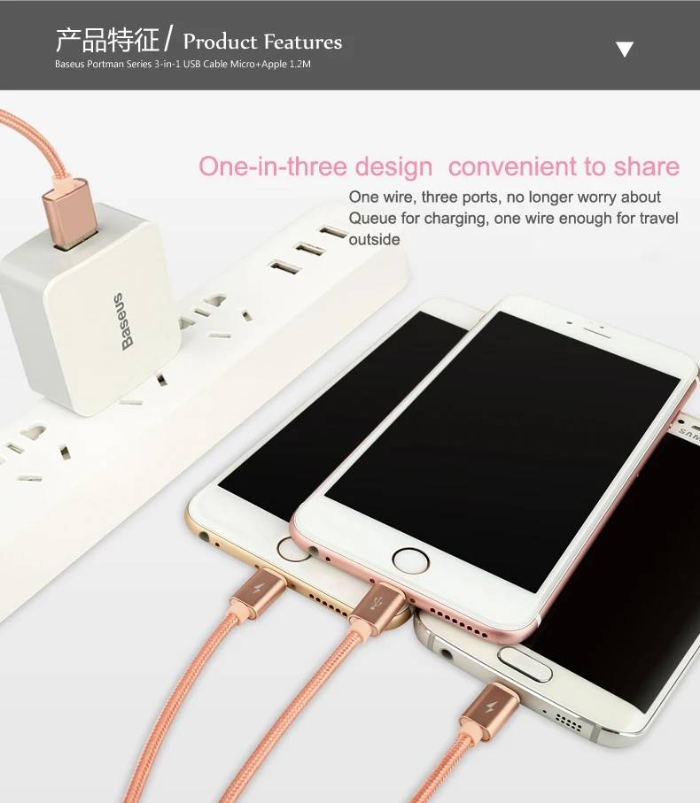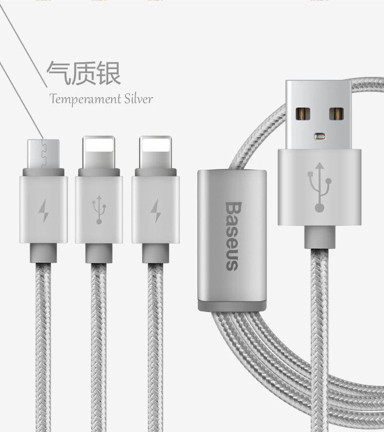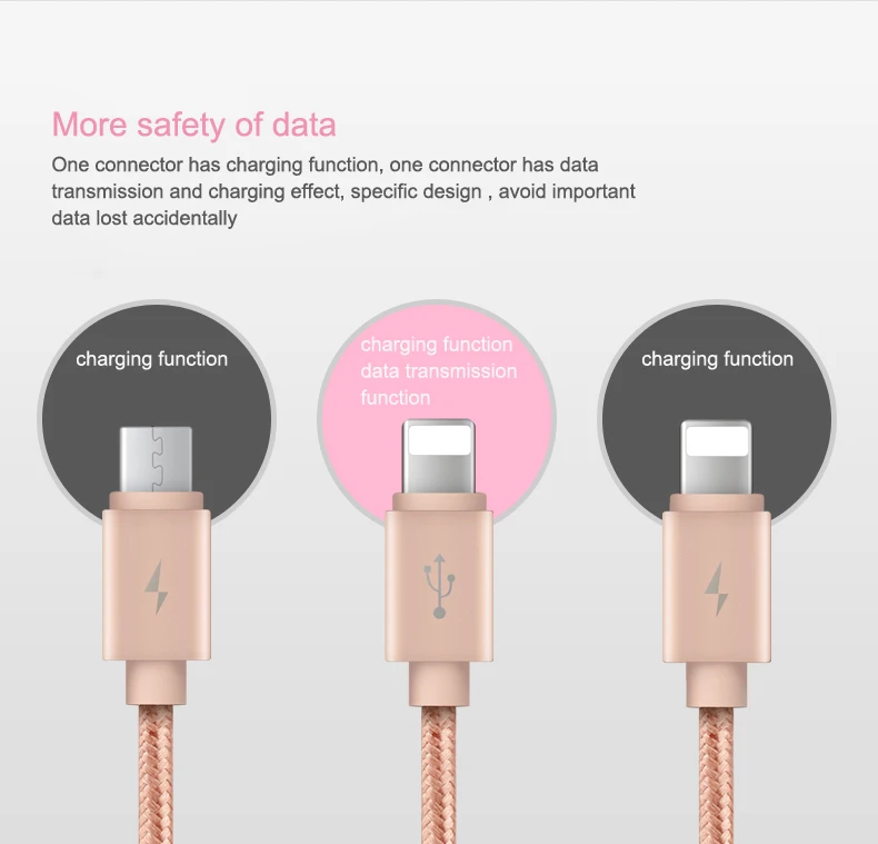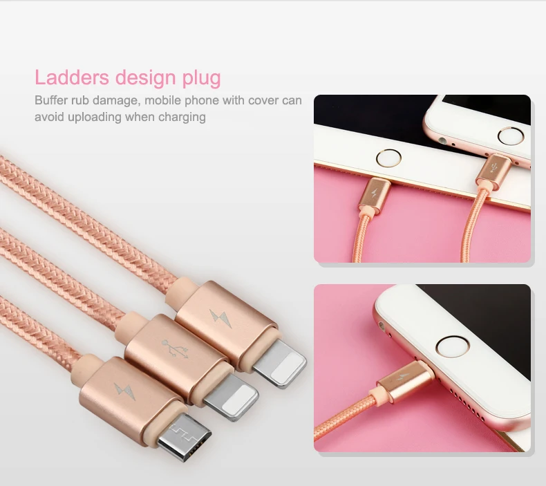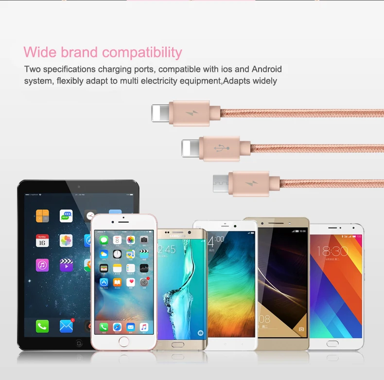 Feature:3 in 1 For 2 Lightning + Micro USB Cable