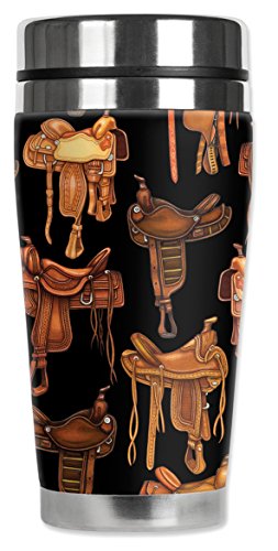 Mugzie 1238-MAX "Saddles" Stainless Steel Travel Mug with Insulated Wetsuit Cover, 20 oz, Black