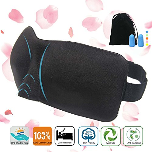 - Contoured Ergonomic Design - Blocks Out 99% Lights - 0% Pressure On Your Eyes - Excellent for Travel - Ideal for Shift-workers - Nap any time of the day - Perfect for Meditation Yoga Relaxation - Protect the skin around your eyes from damage - 3.3" Adjustable Velcro Straps - Bonus Free Ear Plugs and Carry Pouch