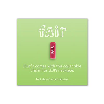 - Feature : When it's time to hit the court, your girl can dress her doll in this outfit: A long-sleeved jersey with contrast sleeves and a team graphic at the chest Black sport shorts with a triple-stripe on the right leg Two terry hairbands to sweep back her hair while she plays Knit knee pads to keep her safe Court shoes with laces for game days Her very own doll-sized volleyball for practicing serves Includes a "Fair" rectangle charm for the doll's charm-keeper necklace