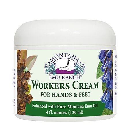 Montana Emu Ranch - Workers Cream for Hands and Feet - 4 Ounce Jar - Enhanced with Pure Emu Oil