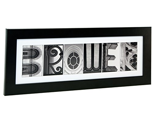 -. Title : Personalized Name with 8 by 20 inch Black Frame created with Black and White Architectural Alphabet Photographs for Personalized Gift, Wedding, Graduation, Anniversary, Baby Name