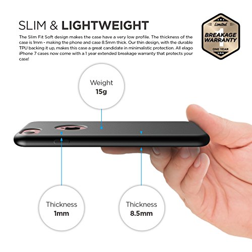 -. Binding : Wireless Phone Accessory -. Brand : elago -. Feature : ROBUST TPU : The design of the slim fit case allows you to show off your new iPhone 7 without sacrificing the protective aspects of a case. / STYLISH PROTECTION: Every minimalists dream - the Slim Fit case - offers the maximum protection that a low-profile case has to offer. This ultra slim case offers scratch and corner protection. Slight lips around the case lifts up your iPhone and allows it to be placed screen-side down on flat surfaces and offers some screen protection when drops occur. / FULLY FUNCTIONAL: Direct, easy access to all buttons and ports on your iPhone 7. elago signature Anti-Ghost Camera cutout allows the camera to be used without any interference from the case. No more reflected flash or ghosting in your photos! / LIFT-OFF: Raised lips protects your screen and camera when placed on flat surfaces. / CONSISTENT PRODUCTION: Through the use of up-to-date technology and advanced design techniques, each elago Slim fit Case is created with virtually no error value. -. Label : elago -. Manufacturer : elago -. Model : ES7SM -. PackageQuantity : 1 -. ProductGroup : Wireless -. ProductTypeName : WIRELESS_ACCESSORY -. Publisher : elago -. Studio : elago -. Title : iPhone 7 case, elago [Slim Fit] - [Robust TPU][Light][Minimalistic][True Fit] - for iPhone 7