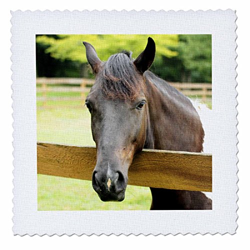3dRose qs_27263_1 Horse Animals Fence Brown-Quilt Square, 10 by 10-Inch