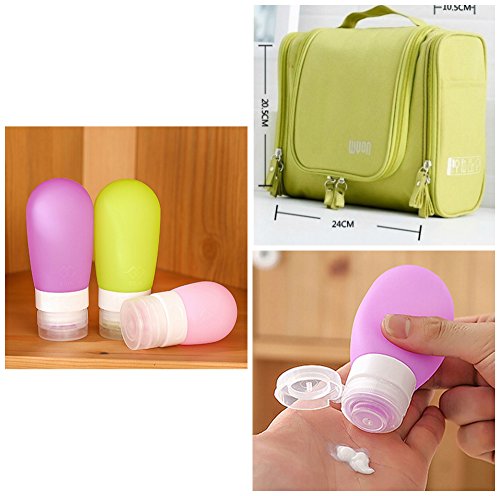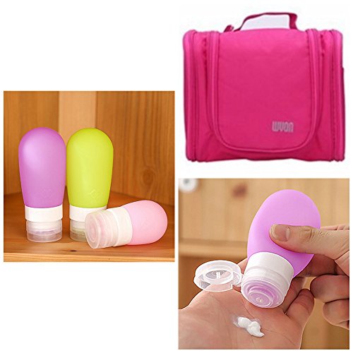 Product Description This lightweight, yet durable toiletry/travel kit is guaranteed to fit snugly into your carry-on case and luggage freeing up valuable packing space. Handy hook means bag can be hung and stored out of the way, beneficial if your trip involves a less spacious room. Silicone bottles are great for on the go travel as well. Fill them up with your favorite toiletries to bring along to the gym, work, camping in you purse. Can also be used to store sauces or baby food in kitchen.(100% food grade silicone - BPA free and FDA approved). 0
