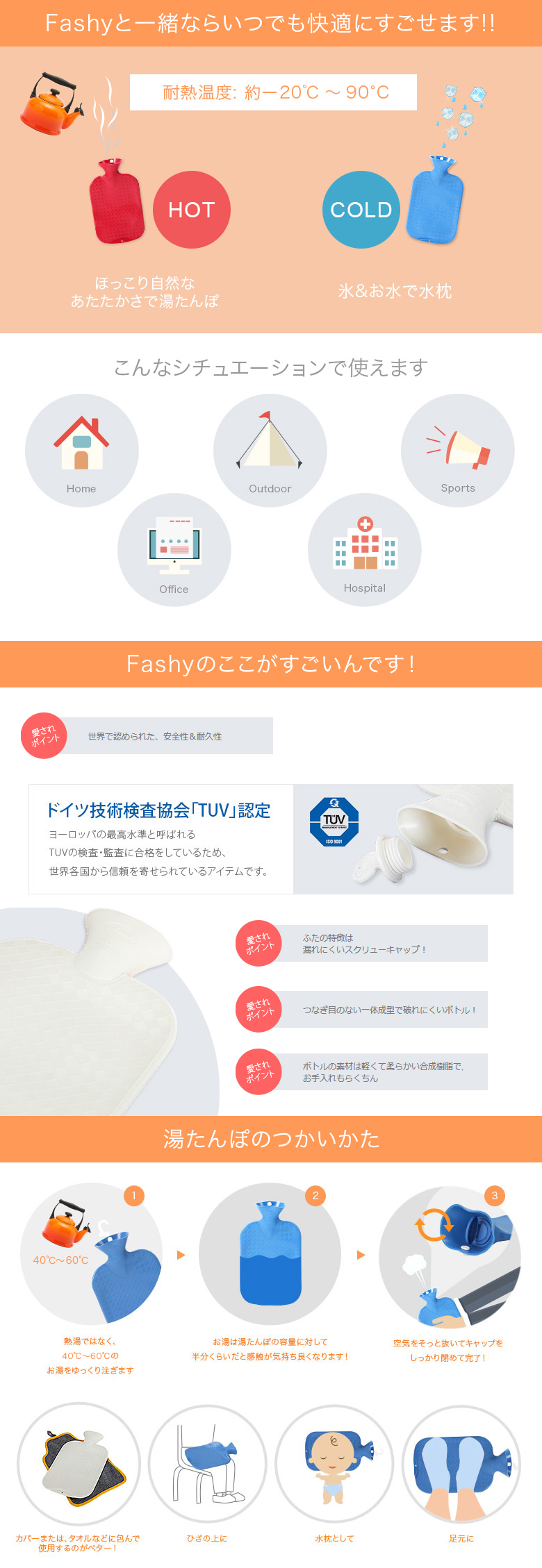 1948年にドイツで創業されて湯たんぽ老舗メーカーのファシー。温かさを通して健康を提供するのがファシー社のコンセプトにしており、常に高品質な製品を提供しています。またドイツの湯たんぽの半分はファシーの製品と言われるほど幅広い人々に愛用されています。