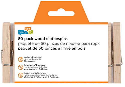 Honey-Can-Do DRY-01375 Wood Clothespins with Spring, 50-Pack, 3.3-inches Length