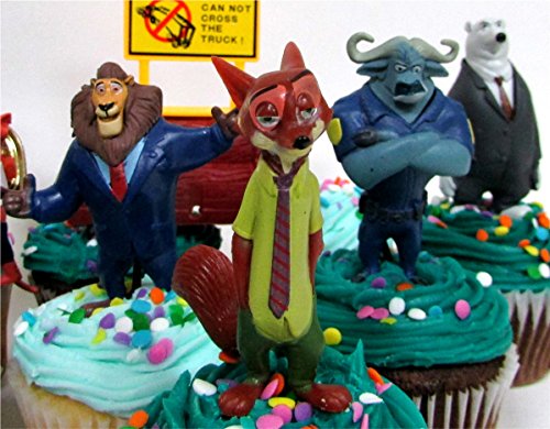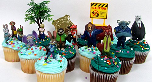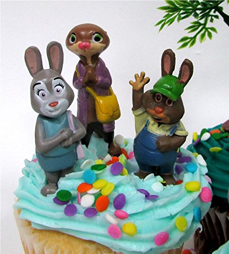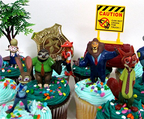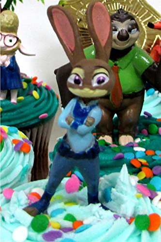 ZOOTOPIA Birthday CUPCAKE Topper Set Featuring Judy Hopps, Nick Wilde and More - Themed Decorative Accessories - Figures Average 1.5" to 3" Tall