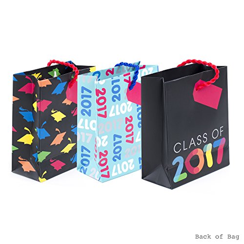 Celebrate graduation in style with this set of gift card holders in multicolored patterns with cord handles and silver metallic foil accents.