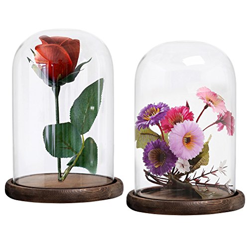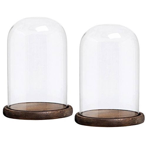 10 x 7 Inches Clear Glass Cloche Bell Jar Display Case with Round Wood Base, Set of 2