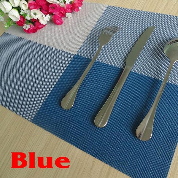| Most Helpful Customer Reviews By Oscar V : Beautiful placemats! Very washable and wonderful protection. Use daily make it hard to keep the placemats looking beautiful. These look like woven linen without the constant hassle of washing them (or the wrinkles after washing). The color blue is relaxing and synchronized with the colors of my dining room and hopefully not descolorice with washed or friction with the dishes because the title says high quality. These placemats are very good quality and the colors are true to the illustration on the website. I have found it difficult to find good quality rectangle-shaped vinyl placemats and was happy to find these. They are reasonably priced as well. | ||