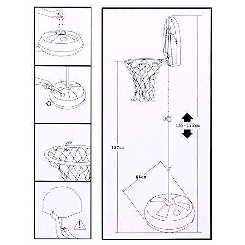 .Color: As Shown .Material: Plastic Metal .Overall Size: 48*48*170cm .Adjustable Height: 153-172cm .Backboard Size: 48*38*3.5cm .Base Size(Dia): 44cm .Length of darts: 8.2cm .Basketball(Dia): 12.5cm .Product Weight: 2970g .Product Dimensions: 45*17.5*48cm .Product Weight: 3670g .Packing: Carton Box