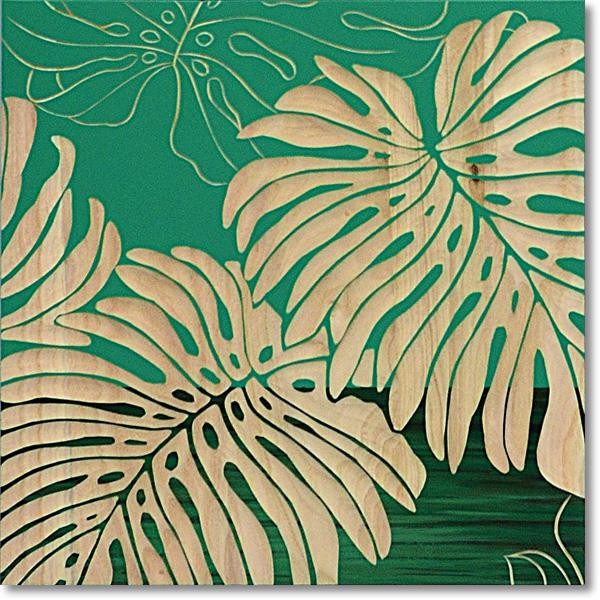 天然の木にペイントを施し、熟練した職人が彫刻刀を使って、1枚1枚彫っています。様々な木目が現れ、ネーチャーなモダンアートです。