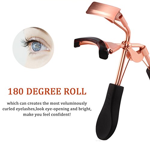 Eyelash Curler, XFJ TECH 180 Degree Curled Lashes Cosmetic Makeup Tool, Professional Beauty Accessory with Anti-Slip Handle (Rose Gold)
