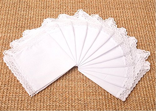 Binding : Apparel Product Description Specification: Size: 9.84 x 9.84 in / 25 x 25 cm. Material: 100% Cotton with lace Gender: Women Color: White Quantity:12 pcs per set Occasions: party, wedding, kitchen, dinner,camping, etc. Condition: brand new Why Buy From Us: - Manufacturer outlets with competitive price - Considerate after-sales service - Superior quality products - Delivery reliable, USPS / UPS trackable Warranty: As a professional seller, we always provide you with the best service and products. Your Satisfaction 100% Guaranteed. If you have any questions about the product, please feel free to contact our service center. We are more than glad to help you. Care Instructions 100% cotton. Hand wash in warm water is highly recommended. Lay flat to dry. Cool iron if needed. 0