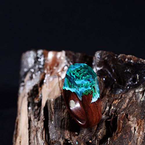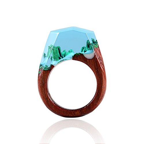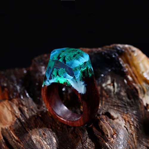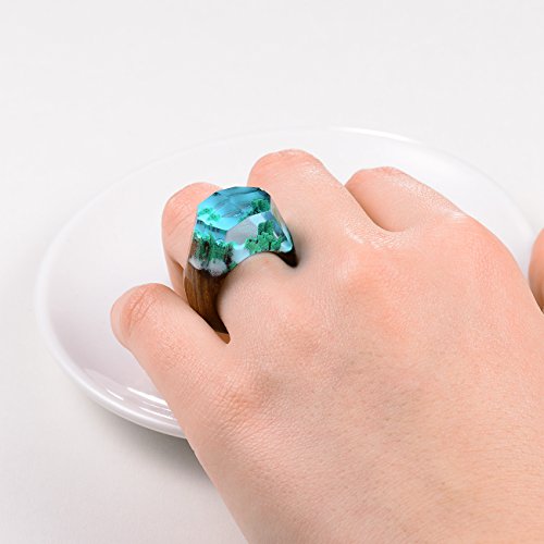Wood Resin Rings Forest Waterfall Landscape Inside Jewelry Glow in Dark Ring Valentine's Day Gifts for Women