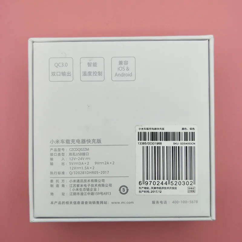 Model Number:Xiaomi Quick Car Charger 3.0 12V 1.5A