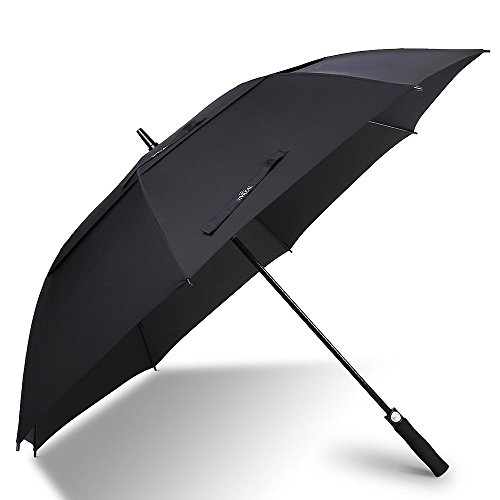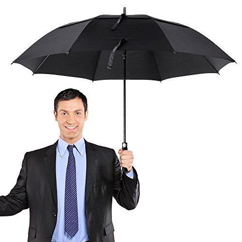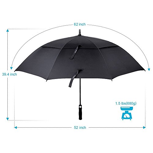 -. Feature : A WONDERFUL COMPANION TO WIN THE GAME - You have the protection of the best golf umbrella so you won't be bothered by harsh elements in your environment. A large umbrella that shades you from sun, wind and rain. All you have to do now is win your game. / THE PREMIUM GOLF UMBRELLA - With a 62-inch oversize canopy and heavy duty design the Vivreal premium Golf Umbrella is an ideal companion for golfers, the business professional or for daily life. With its sleek all black design, comfortable EVA grip, sturdy frame and auto open mechanism, the Vivreal Ultimate Golf Umbrella is perfect in a metropolitan city or a sports field! / UNIQUE CHARACTERISTICS - This extra large canopy will easily keep you and your belongings dry, no matter the circumstances. The 210T specially coated water repellent fabric and ergonomic EVA handle make it outperform any competition. / SUPERIOR PROTECTION - Every Vivreal windproof umbrella canopy is made from 210T micro-weave fabric that is coated with the best water repellent treatment - DuPont Teflon. It comes with a sturdy pouch which you could put it away perfectly when you do not use it. When you go out for game, it is so convenient to take away with the carry pouch.