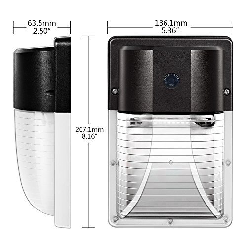 Automated dusk-to-dawn photocell functionality.Light OFF at sunrise/daytime and light ON at sundown/night.Die-casting of aluminum housing with clear lens,Anti-corrosion,Waterproof IP65,4000K Daylight for Outdoor illumination.