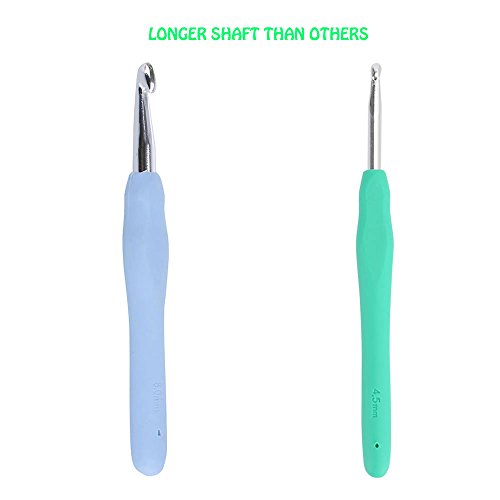 YARN SNAGGING & SPLITTING? Our crochet needles are SMOOTH and NO ROUGH EDGES, aluminum part is smooth and longer shaft to allow more yarn loops, longer than any other brands out there. Try to compare :) The hook throat is deep enough to generously catch the yarn. The point is just right, not so sharp to split the yarn but easy to get into stitches. The result? Of course it?¡¥s great, consistent, flat and smooth stitches! It?¡¥s BEAUTIFUL, you?¡¥ll be so PROUD of every finished projects!