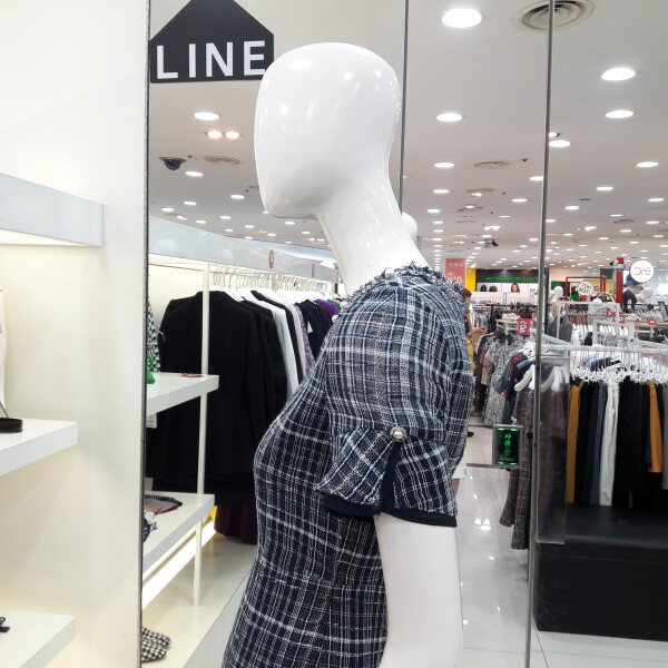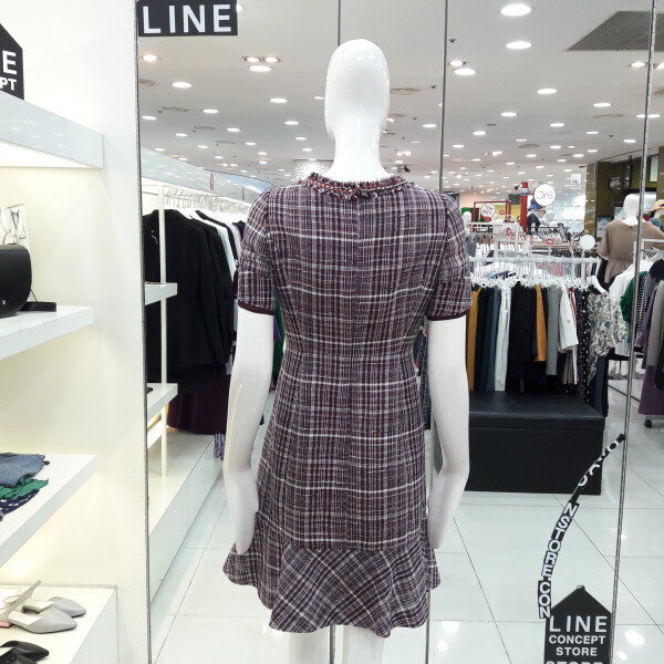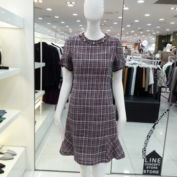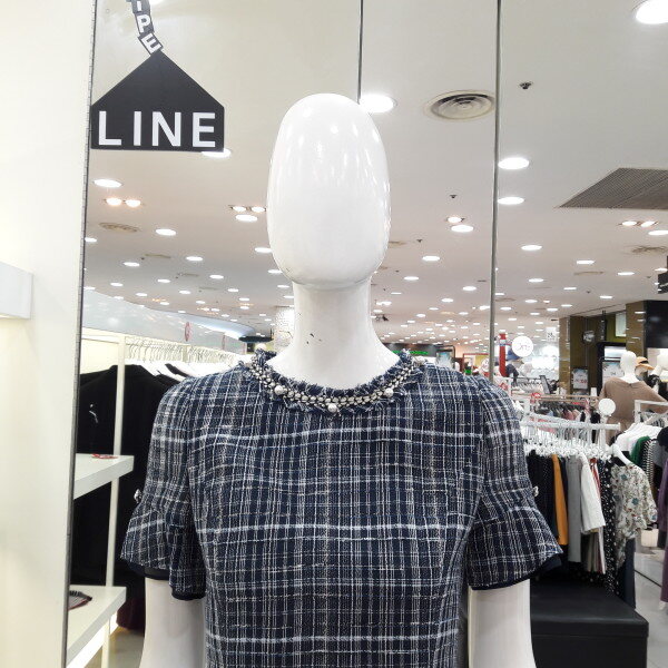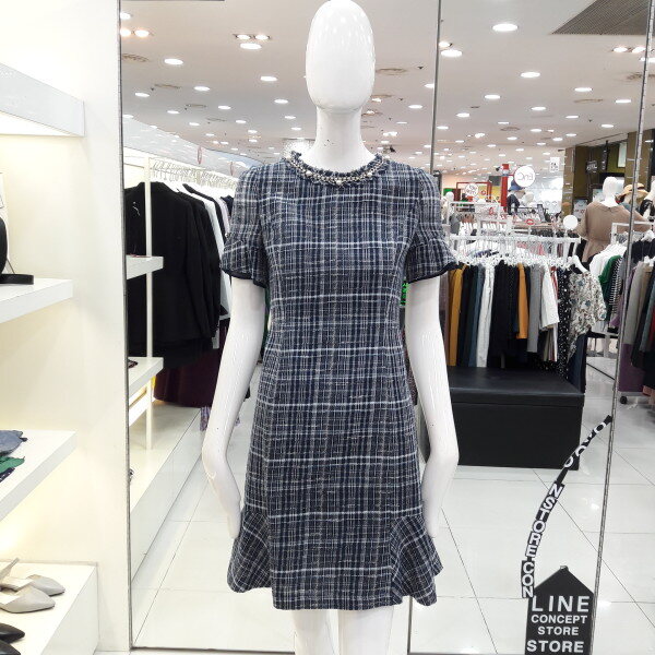 2018년 신상 고급스러워 보이는 트위드소재의 세련된 원피스입니다 얇은 두께감으로 지금 착용하기 좋으며 소매 시스루포인트로 여성스러운 스타일입니다