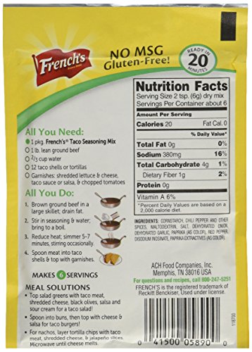 French's Seasoning Mix, Taco, 1.25-Ounce Packets (Pack of 24)