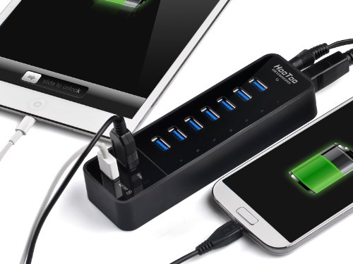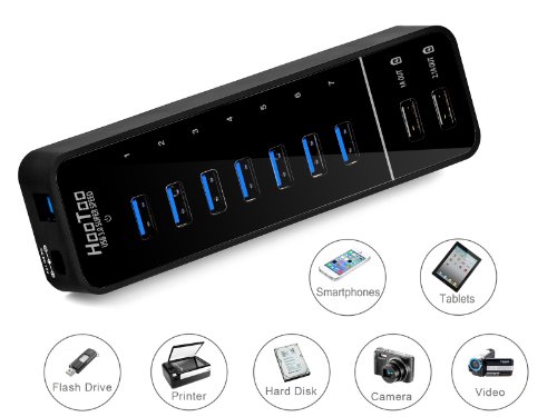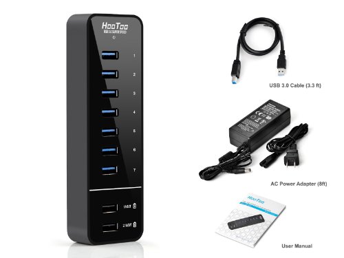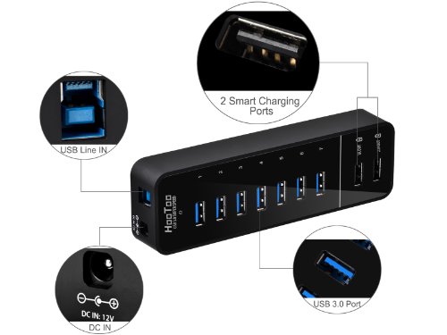 The HT-UH010 comws with 7 USB 3.0 ports + 2 samrt charging ports. 2 smart charging ports provide full-speed and sufficient powers to charge all Apple and Android smartphones, tablets and other USB charged devices with a 5V charge input. It is massive expansion, provide 7 USB 3.0 ports for home and work users. There are LED indicators for each USB 3.0 ports and power supply. Our product has 18 Months Warranty. Remarks: 1. Supports Windows 98/Me/2000/XP/Vista/7/8. Mac OS X or above. Linux 3.0 or above, not support Windows 8.1 2. Some USB 3.0 devices require a direct connection to host USB 3.0/2.0 ports, including some USB 3.0 hard disks and does not support 2.4GHz wireless devices such as wireless mouse or keyboard. 3. Charging ports do NOT support data transfer and USB 3.0 ports do NOT support charging. 4. Does not support iMAC mini, Mac Mini and MacBook Pro with Retina Display and iMac with 27" Retina are currently not recommended for use with this product because the unstable performance