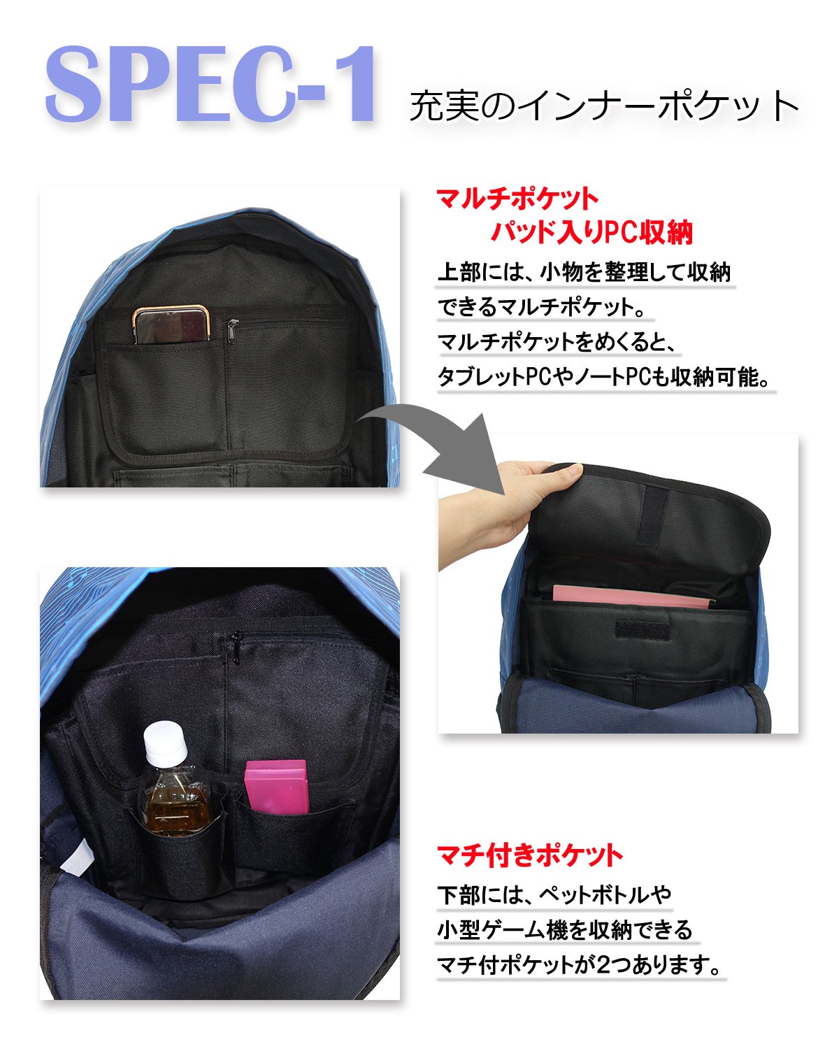 Side pocket and padded storage space, etc. It is a recommended point because it is fulfilling storage, making it easy to use specifications.